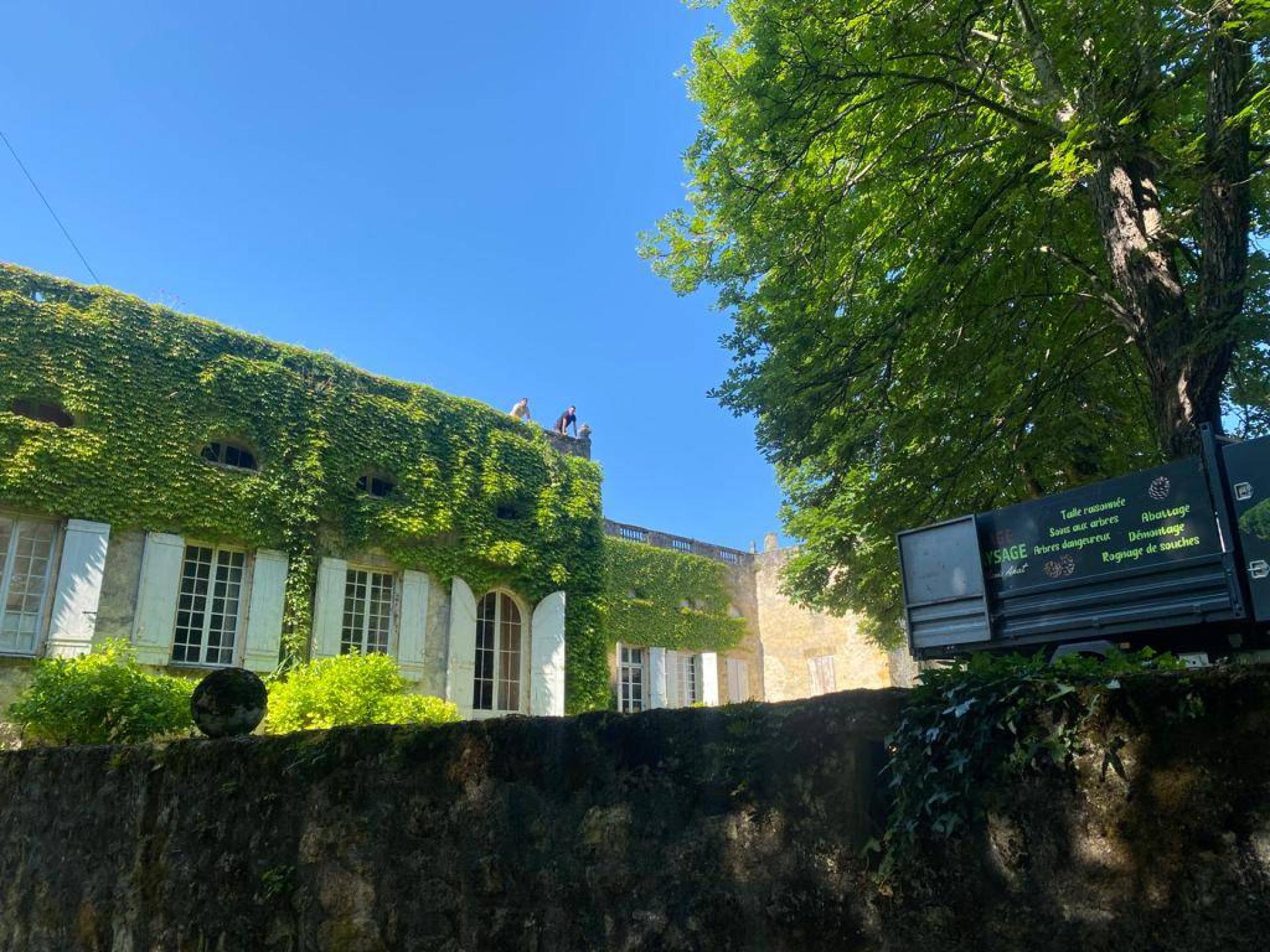 Nous avons aussi taillé une vigne vierge sur 50m linéaire du toit jusqu'au 1er étage pour en mettre en valeur le balustre.