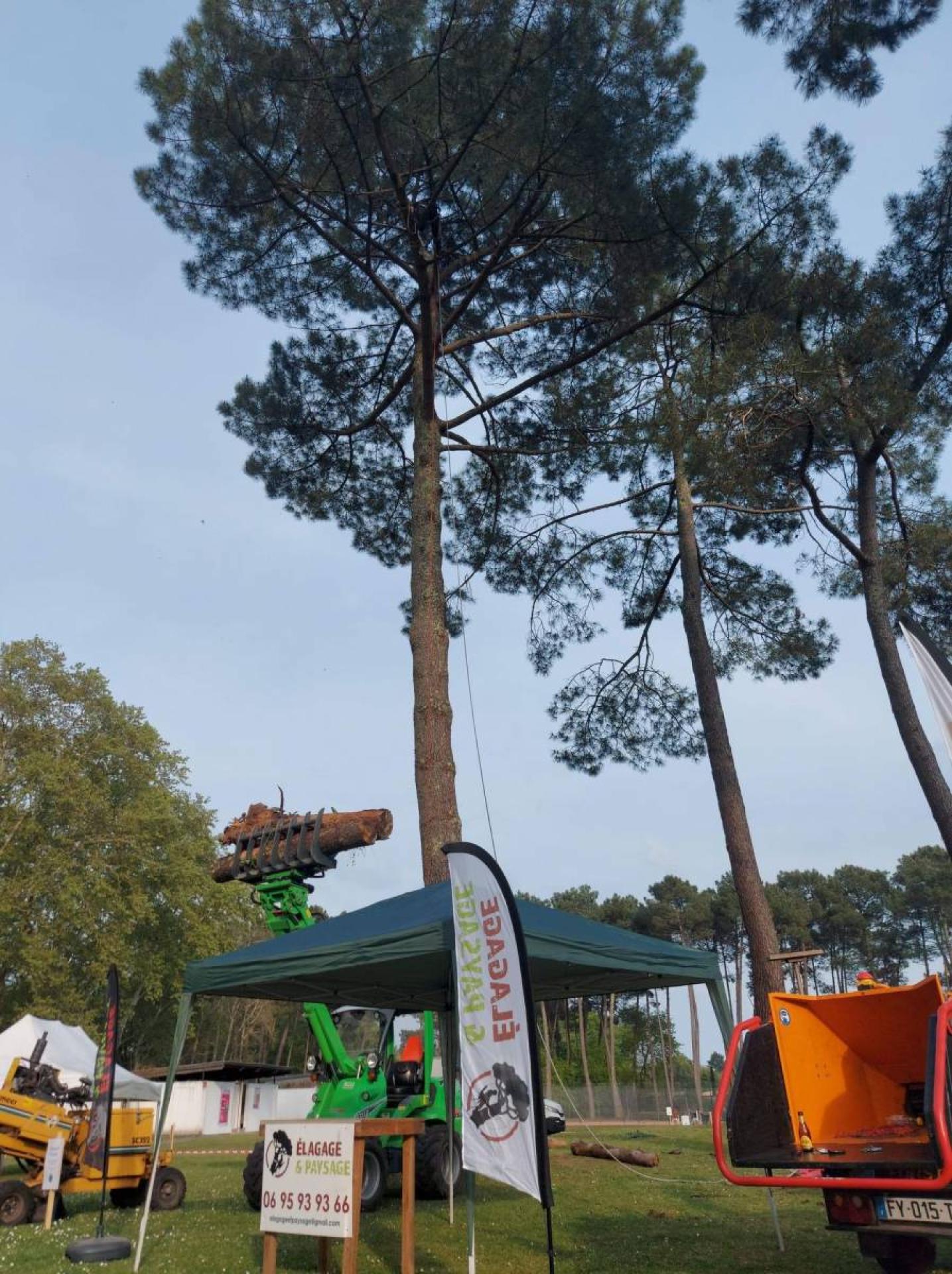 Démonstration de grimpe dans un pin maritime en footlock, exposition de nos broyeur de branches, rogneuse de souche et chargeur, et surtout échanges avec les visiteurs étaient au programme!